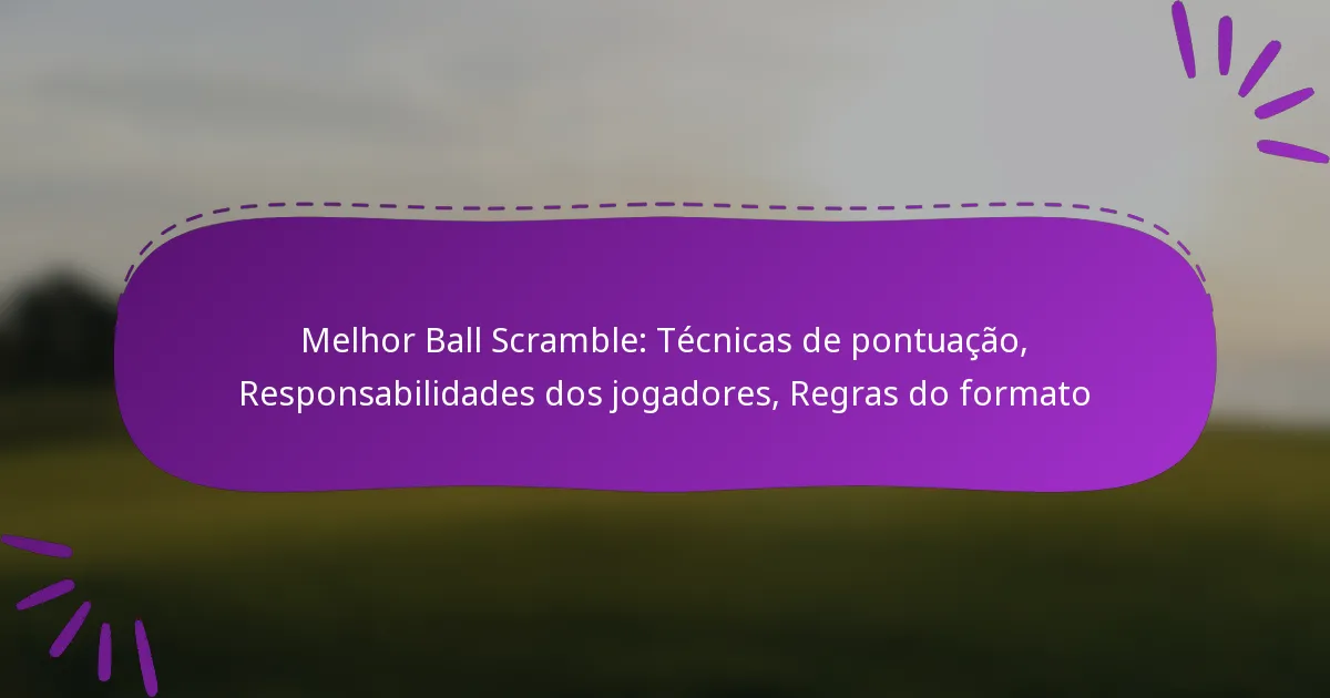 Num scramble de melhor bola, as técnicas de pontuação concentram-se na melhor performance individual de cada membro da equipa para cada buraco. Este formato permite que as equipas maximizem as suas pontuações ao selecionar o melhor golpe entre todos os jogadores, promovendo o trabalho em equipa e a estratégia.